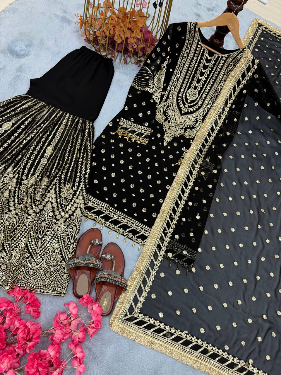 Heavy Embroidered Black Color Fabulous Sharara Suit