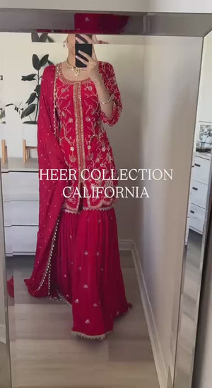 Heavy Faux Georgette Embroidered Top–Sharara Set with Dupatta
