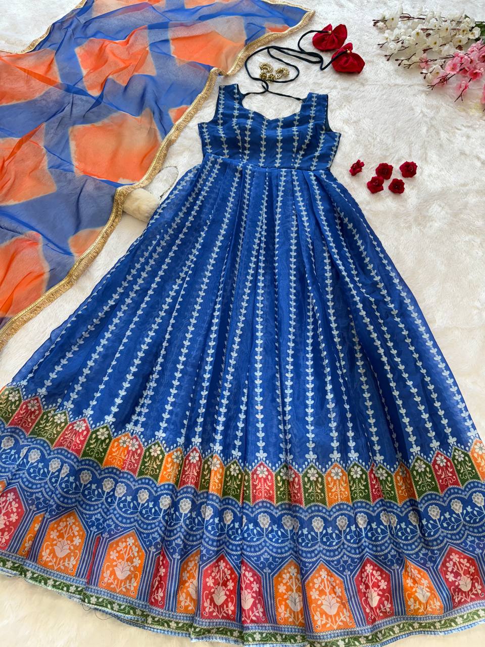 👗 Anarkali Gown - pure Jimmy organza silk digital printed padded gown with 54+gown length !! Huge Flair outfit ! 🔥