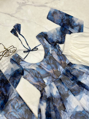 Marble Print Organza Silk Navy Blue Anarkali Suit