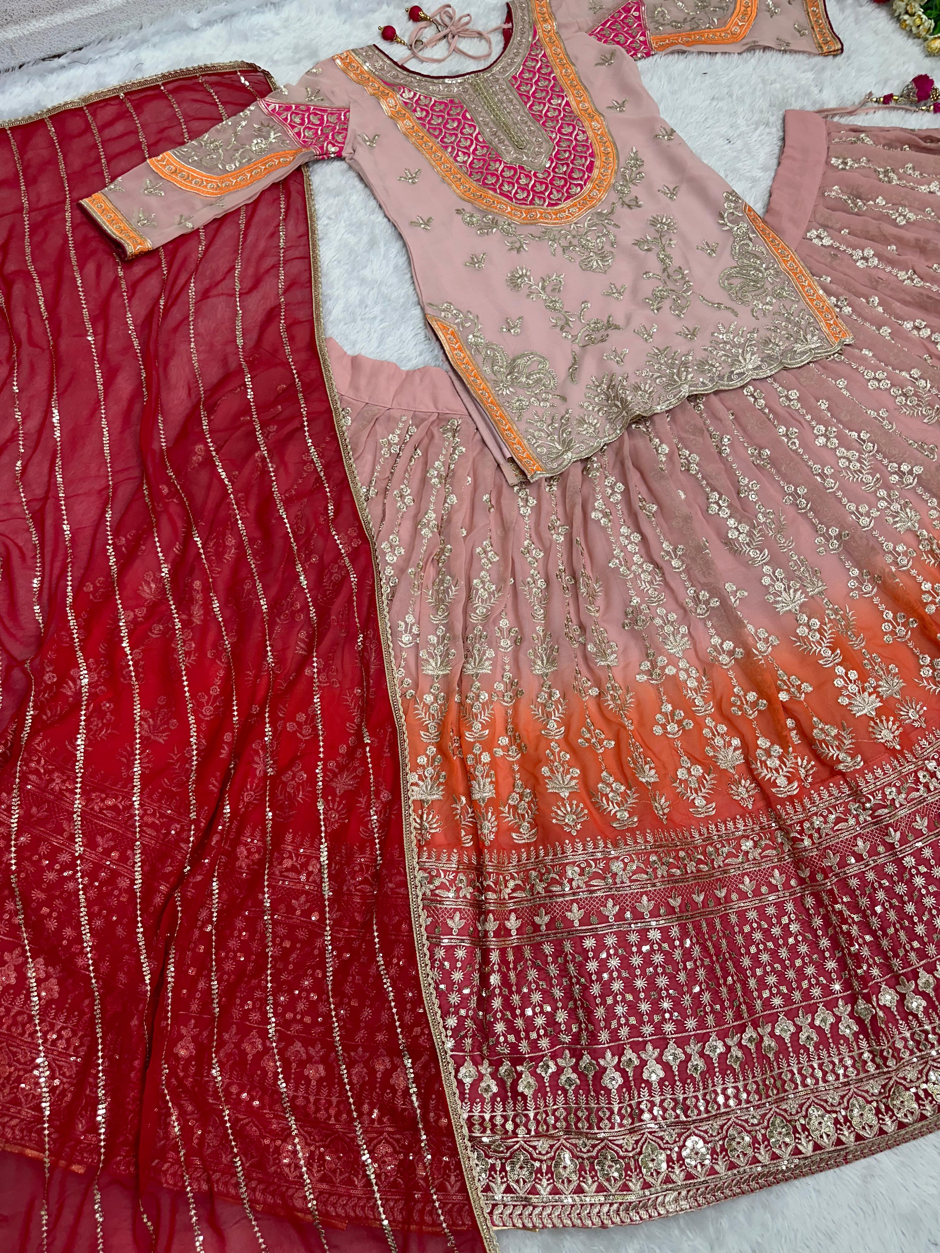 | Work | EMBROIDERED SEQUENCES WORK ( FRONT AND BACK SIDE FULL WORK WITH LATKAN) |