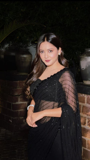 Noir Luxe Shimmer Georgette Saree with Cutdana Detailing