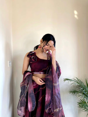 Organza Silk Wine Color Lehenga With Exclusive Blouse