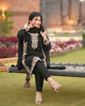 Outstanding Riveted Moti Work Black Color Palazzo Suit
