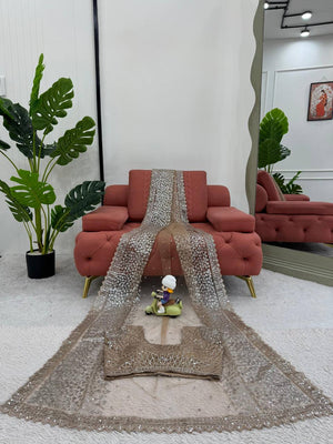 Outstanding Soft Net Beige Color Sequence Work Saree