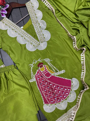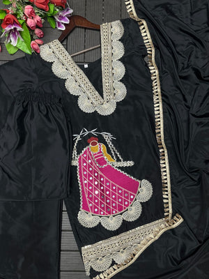 Party Wear Crepe Embroidered Top, Sharara & Dupatta Set