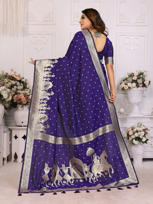 Pattern Wedding & Party Wear Kochi Silk Blue Color Saree