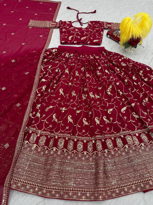 Pattern Wedding & Party Wear Sequence Work Red Color lehenga choli