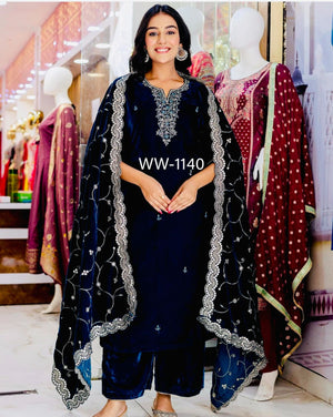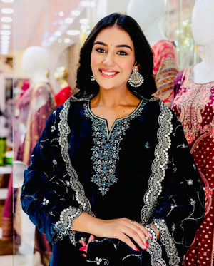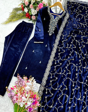 Precious Blue Color Velvet Embroidery Work Salwar Suit