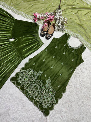 Preferable Sequence Work Green Color Sharara Suit