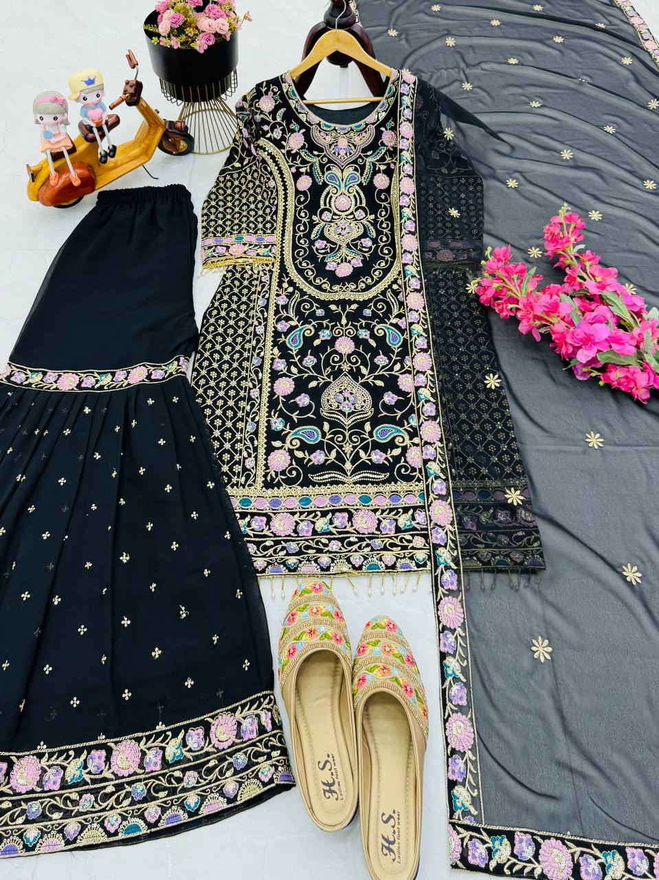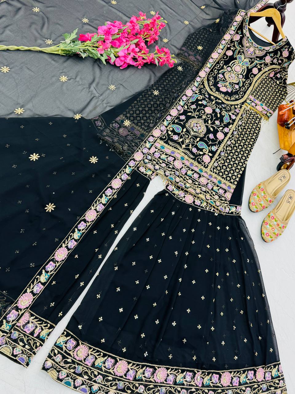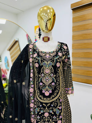 Adorable Heavy Work Black Color Palazzo Suit