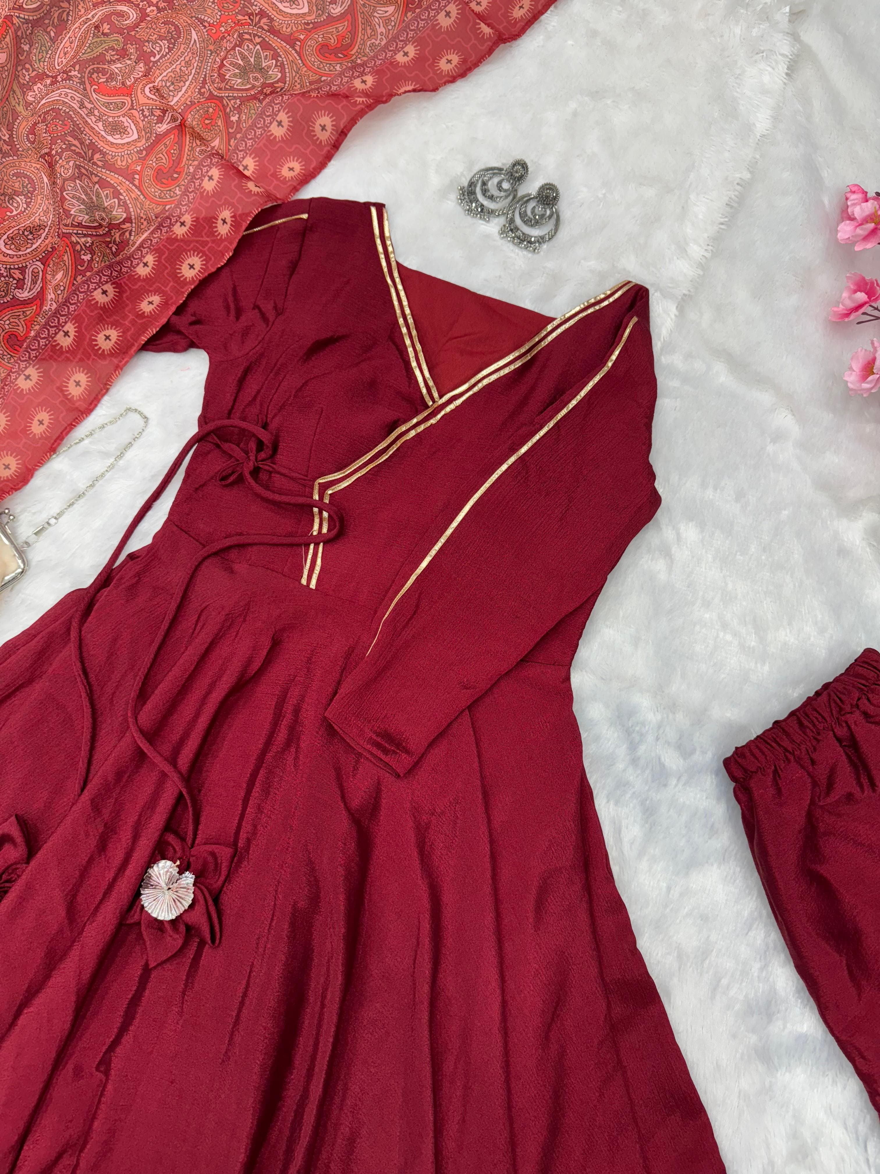 Red Color Fully Stitched Huge Flair Anarkali Gown