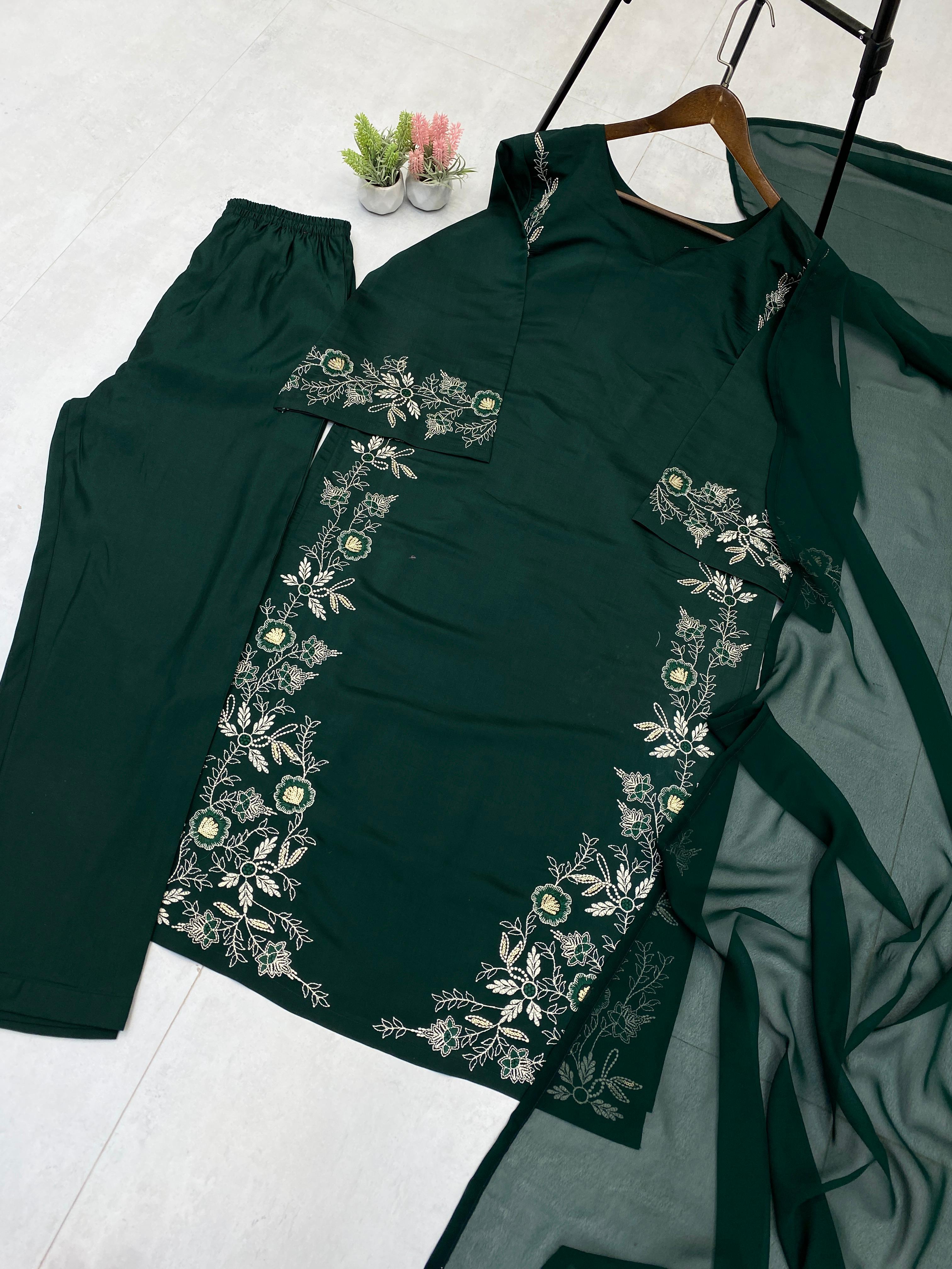 Roman Silk Green Color Straight Salwar Suit