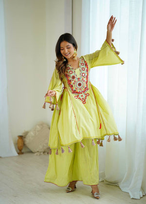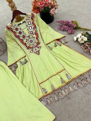 Stylish Pista Color Work Embroidery With Sequence Work Co-ord Set
