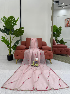Thread With Sequence Work Light Pink Silk Saree