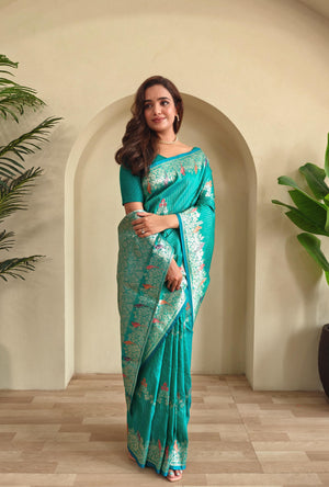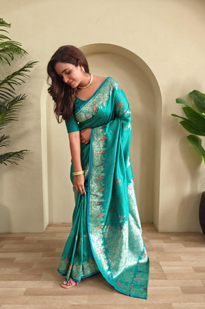 Traditional Wear Teal Green Color Silk Saree