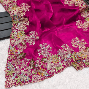 🥻 Sari Fabric : Pure Soft Jimmy Cho with Heavy Embroidery Multi Treads , Coding & Sequins 🧵Work & Fancy CutWork Border