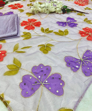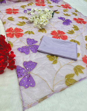 Trendy Lavender Color Sequence Work Organza Silk Saree