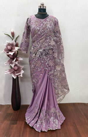 Trendy Lavender Color Net Sequence Work Ready To Wear Saree