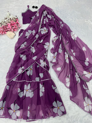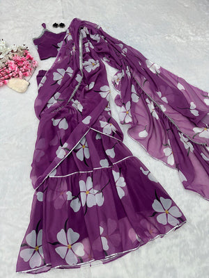 Unique Georgette Purple Color Lehenga Saree