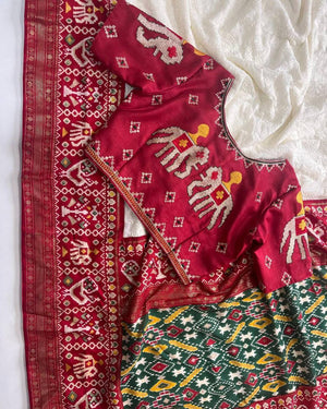 🥻 Sari Fabric : Premium Georgette with Chikankari Lucknow Embroidered Saree Fusion of Rich Patola Foil Printed Border and Pallu with Handwoven Exclusive Ball Tassels