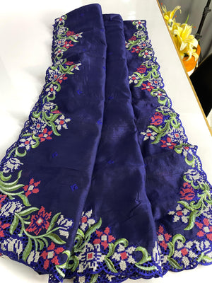 Description - Tussar silk sarees with all over embroidery design and cut-work design.