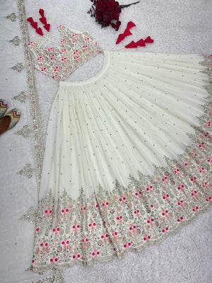 White Color Georgette Sequence Work Lehenga Choli