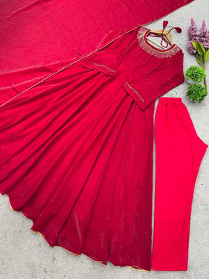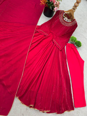 Wonderful Fully Stitched Pink Color Moti Work Long Gown