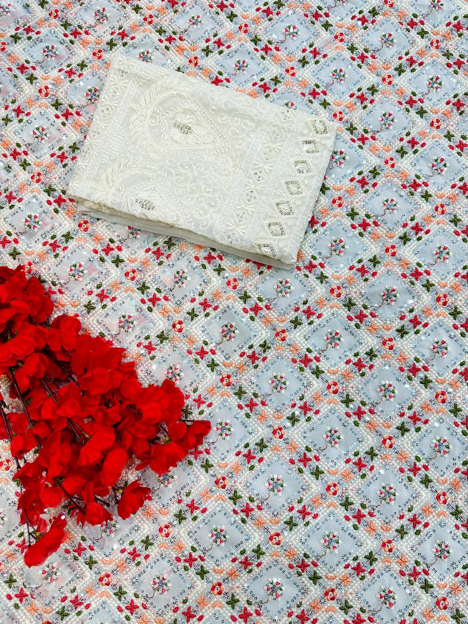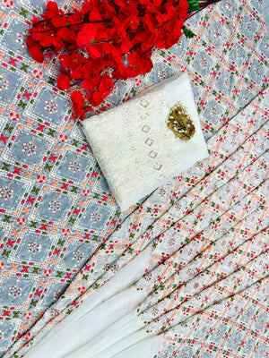 Wonderful Multicolor Embroidery Work Saree