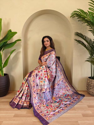 🥻👉🏻 Premium loom silk sarees with intricate paithani weaving design all over with muniya chaap border.