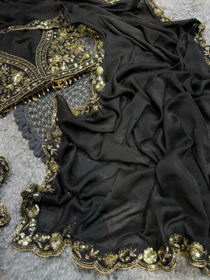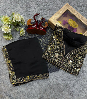 Wonderful Soft Rangoli silk Black Color Saree